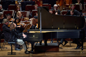 MTT conducted two lengthy pieces, one at the beginning of the birthday program and another at the end. The opening was Benjamin Britten’s, Variations and Fugue on a Theme of Purcell, Opus 34 (1946). It is also called The Young Person’s Guide to the Orchestra. While it might have educational aspects, it is, as Michael Steinberg wrote, “the work is very much worth playing for its sheer musical pleasure.” The music’s theme comes from Purcell’s revival of Abdelazar, or the Moor’s Revenge, a play by Aphra Behn. The music first identifies one section of instruments – maybe strings or percussion and the others. Then, Britten puts the orchestra back together in a fugue; he has themes for each section. The instruments play them one at a time and then together. It is happy, playful music which is not at all superficial; it brings music that bows and smiles. Wonderful choice.