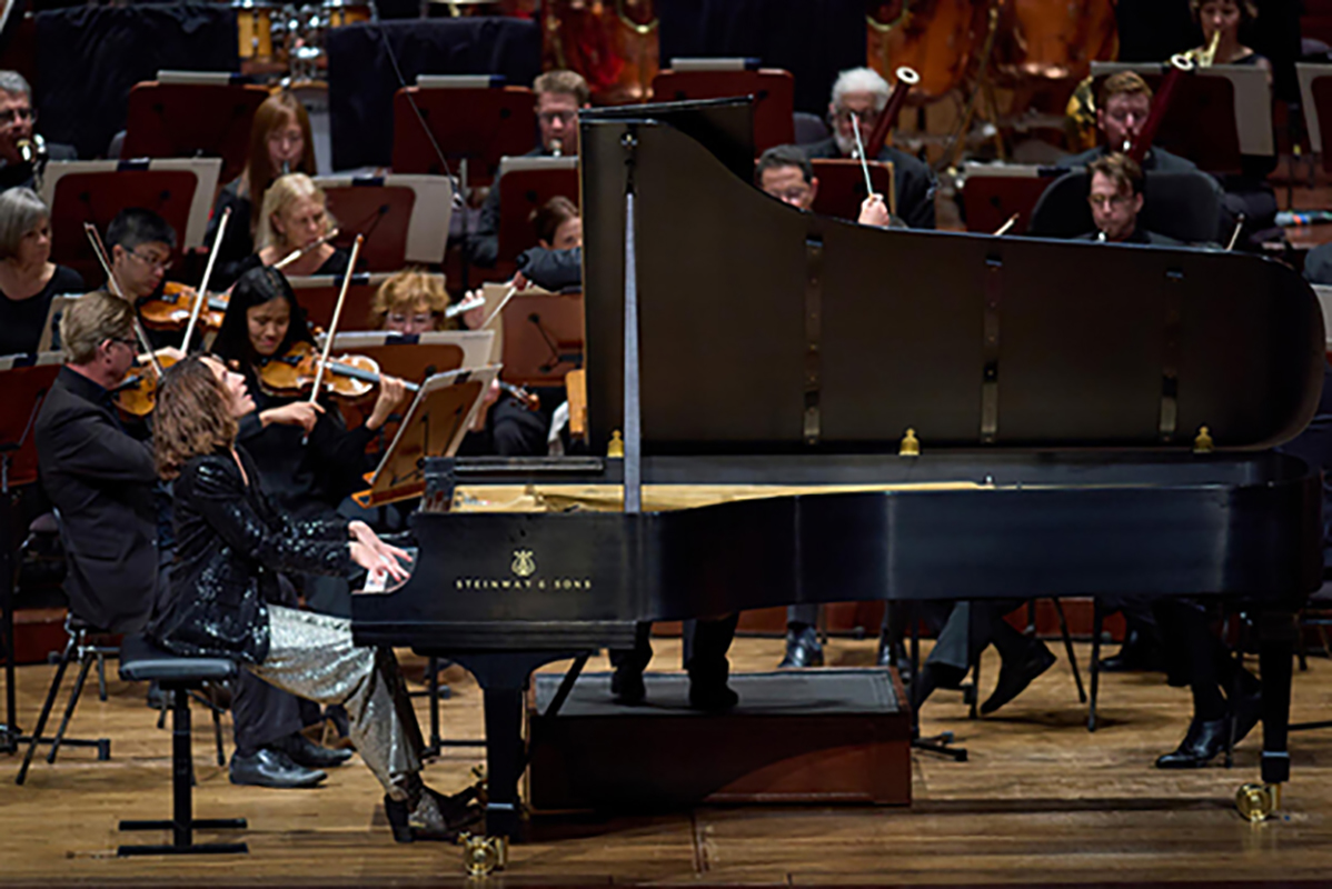 The San Francisco Symphony with James Gaffigan, Conductor, and Hélène Grimaud, Piano, in performance of Carlos Simon’s “The Block,” George Gershwin’s “Piano Concerto in F” and “An American in Paris,” and Duke Ellington’s “Harlem.” At Davies Symphony Hall on Thursday night, September 18, 2025. Photo: Stefan Cohen
