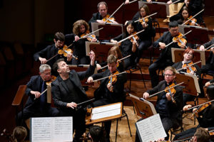 If you ever learn that Gil Shaham, violinist, is playing near you, someplace on this same planet, go to hear and see him. He was the guest soloist playing Brahms’ Violin Concerto in D major. He is a blissful musician and shares the bliss with his audience. As he played, he related to the conductor, Juraj Valcuha, and also turned toward the Concertmaster, Alexander (Sasha) Barantschik. It seemed that he wanted their experiences in the music to fit with each other so that they enjoyed making music together.