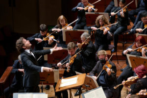 Piotr Ilyich Tchaikovsky (1840 – 1893) The Symphony No. 5 in E minor, Opus 64, was created in 1888. This has been a beloved, moving symphony since it premiered. In the 1890s, it was attacked for being “ultra-modern” and even for Tchaikovsky’s ancestry. “while in the last movement, the composer’s Calmuck blood got the better of him, and slaughter, dire and bloody swept across the storm-driven score.” Tchaikovsky was not related to this ethnic group in Russia which was actually Buddhist. Fortunately, the composer overcame a depressive attitude toward the 5th Symphony which he had loved as much as its audiences loved it. There are several themes that appear more than once throughout the symphony. It begins with Andante-allegro con anima. It seems to be dark with its clarinets, but Tchaikovsky lets a lovely waltz interrupt the unhappy theme. The end of the first movement has a rough feeling. Andante cantabile, con alcuna licenza, the second movement, truly moves onward with a charming attitude, but the theme in the first movement invades the second movement. The third movement, Valse: Allegro moderato, dances its way to sunshine and no dark clouds. The signal for the end is the theme from the first movement moving into the springy waltz. The closing movement seems to know how to tame the first movement’s theme. It takes away its threatening just when the finale begins a march rhythm that sets the music into a serious drama. The ending is triumphant. It is a sunny day. Photo below Conductor Gustavo Gimeno, photo by Stefan Cohen