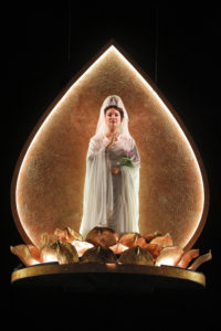 Mei Gui Zhang, Guanyin; she is suspended above the stage.