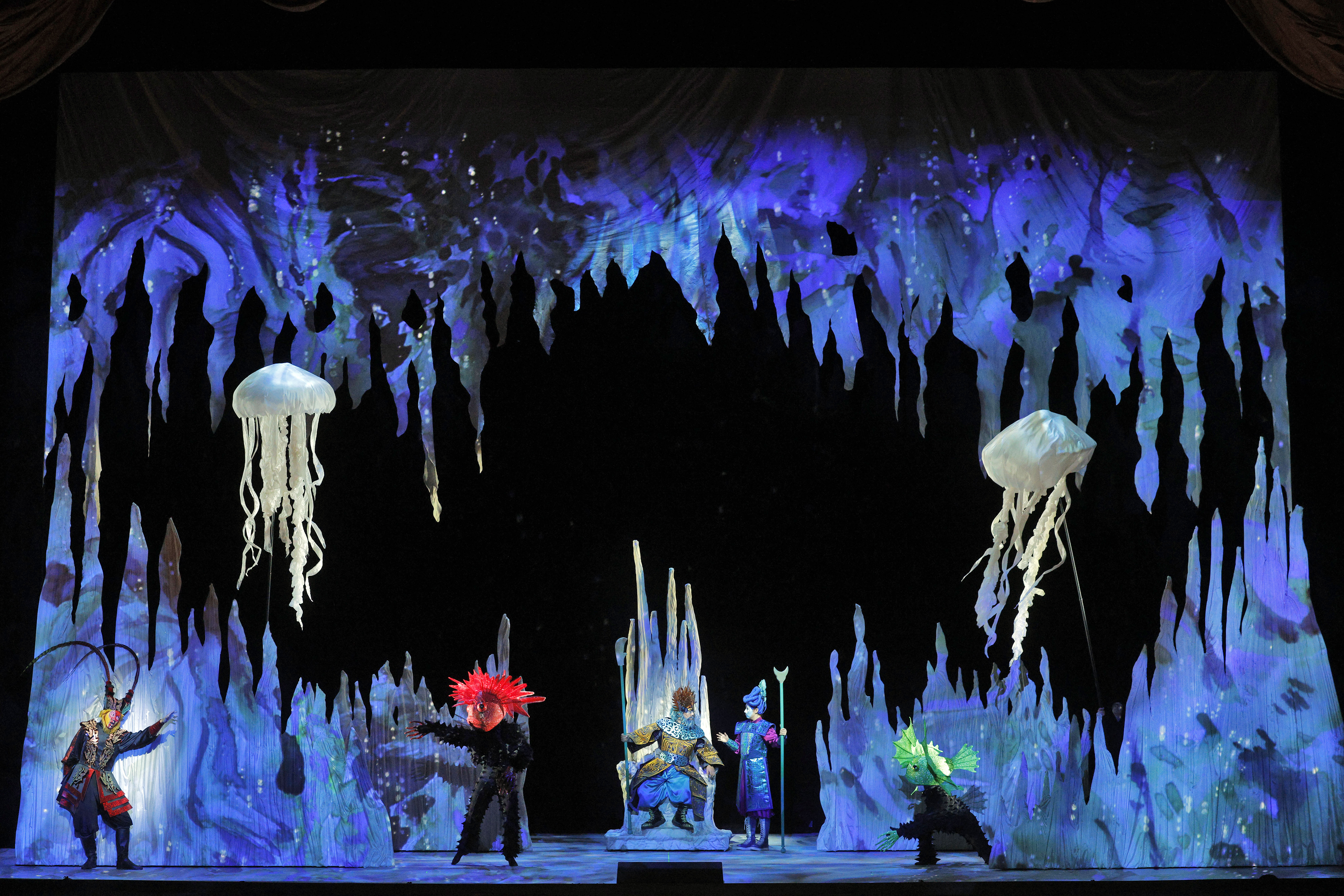 There are additional Monkey Kings. There is a Monkey King Dancer, Hulwang Zhang; Lord Erlong Dancer, who knows how to fight the King and a puppet Monkey King.  It makes sense to have the cast represent all aspects of the Monkey King. Their talents express the fullness of the King. This opera has an overwhelming, active, gorgeous production.    This is the Dragon Palace of the Eastern Sea; making a scene under water is a fabulous event.